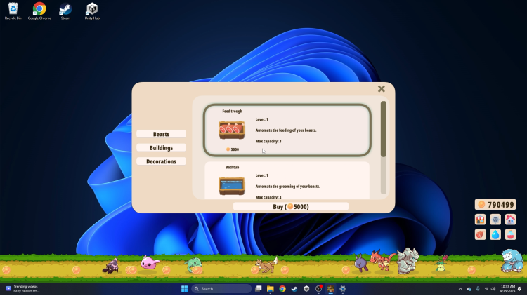 自定义与升级: 无论是生物技能还是土地装饰,游戏都提供丰富的自定义选项。放置装饰建筑不仅美观,还能提供被动加成,提升生物属性。