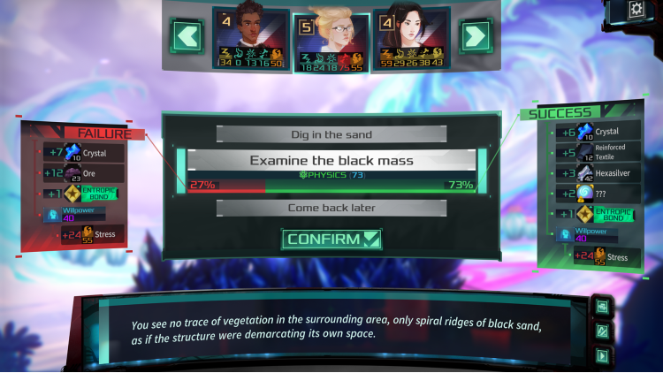 Dead in Antares是一款融合了RPG元素的回合制生存管理游戏,故事发生在一个外星星球上。你将领导一支肩负拯救人类使命的幸存者小队,管理成员的需求,增强团队协作,探索这片神秘世界,寻找回家的道路。