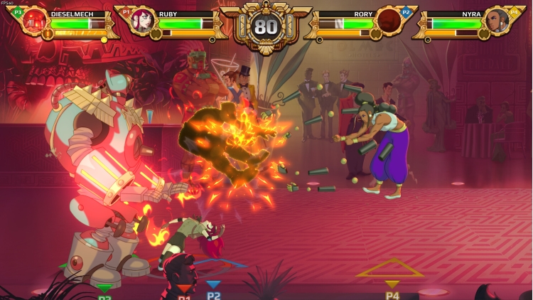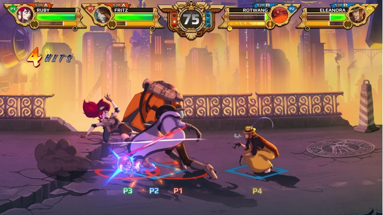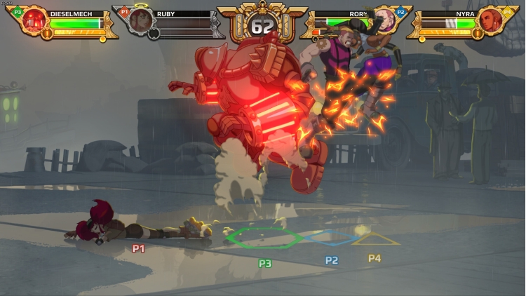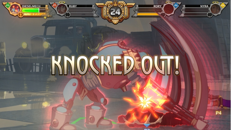 《Diesel Legacy》的特色是 2v2 对战——四名玩家分为两队,在同一关卡同一时间进行游戏。这种有别于传统 2D 格斗游戏的独特玩法带来了全新的战略变化,合作将是获得成功的关键。与你的队友一起持续连击,挫败对手的攻势,并双双击倒对手来夺取胜利!