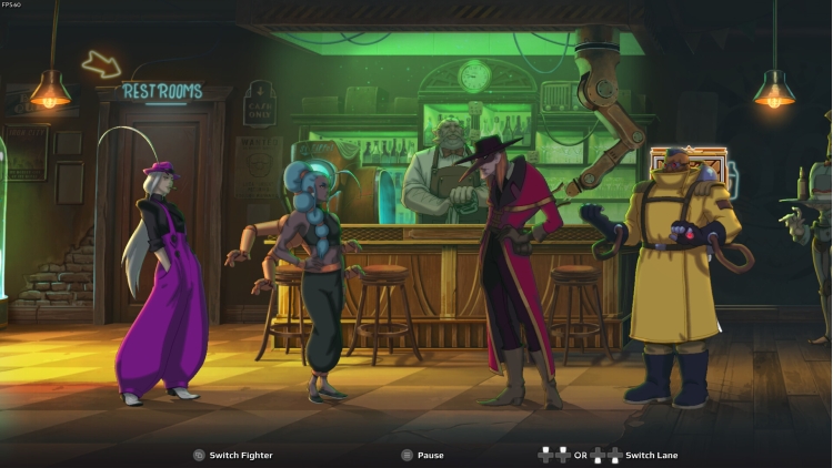 每个关卡设有三条赛道,玩家可以随时自由在赛道中移动。靠近你所在赛道上的另一名玩家进行攻击或防守,跳到另一条赛道上进行恢复,或闪到对手背后打他个措手不及。与队友合作,充分利用每个角色的独特玩法来控制战斗走向!