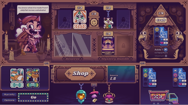 每晚,你都得赚够钱币支付当地地主的租金,否则就会破产收场。面对瞬息万变的市场行情和独特的地域条件,灵活调整经营策略,巧妙搭配强力组合,精心优化护符,助卢克满打造世界第一的传奇夜市!
