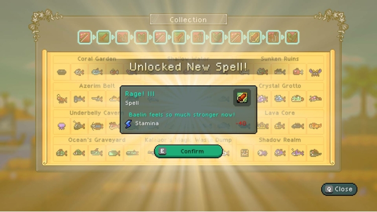 当阿泽里姆的英雄们神秘失踪时,一股邪恶力量威胁着要占领这片土地!渔夫NPC贝林必须挺身而出,用他唯一知道的方法保卫蜜林镇!然而,情况不同了……贝林不再是一个NPC,而是……一位冒险者!运用精准的时机和魔法与鱼儿战斗,提升你的能力,击败邪恶势力,重建蜜林镇。