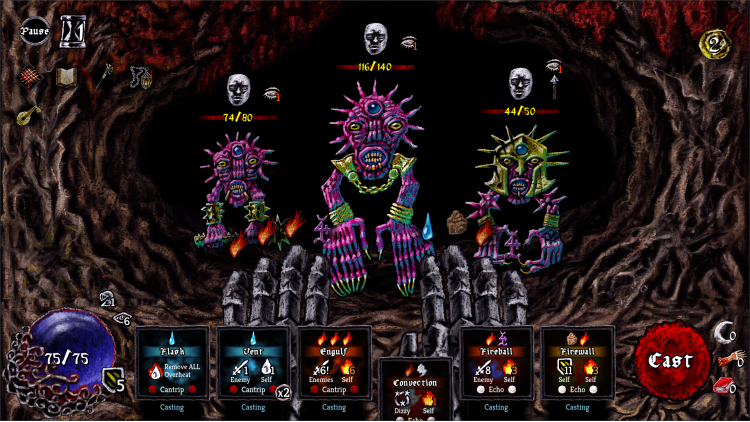 你是一名法师。一个因魔法罪行入狱、并不那么英雄的法师,被侄女的邀请从沉睡中唤醒。逃出监牢,穿越危机四伏的敌对世界。每个回合都是符印闪耀、骨骼碎裂与绝望手势交织的狂乱,你以原始的元素之力撕裂怪物。
