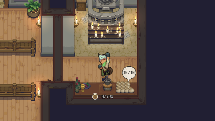 - 在你的坩埚里煮药。 你可以将收集到的原料放入坩埚,从而调配药品和维生素等等。随着经验的积累,你将能够调制更高级的配方——需要的原料更多,但效果也更好。强化后的坩埚可以调制更多配方原料,从而获得更高级的药品。