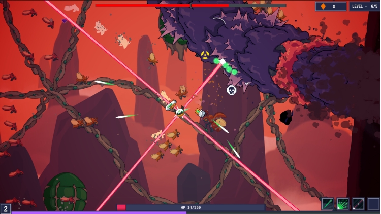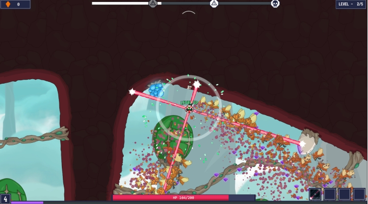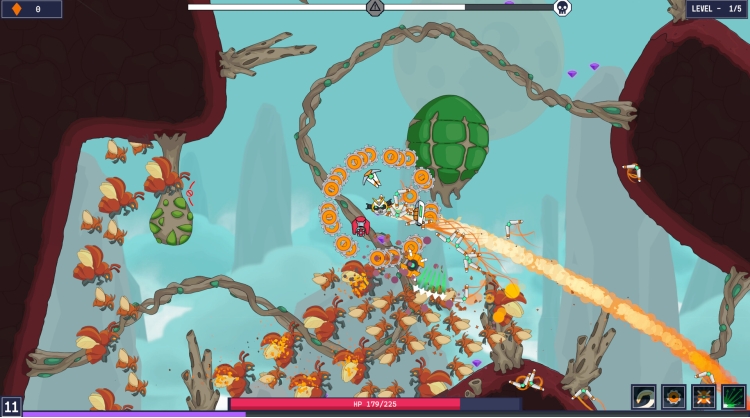 弹幕射击。在受生存类游戏启发的自动射击玩法中,面对无情的外星敌人。专注于移动和位置,剩下的就交给你的武器吧。