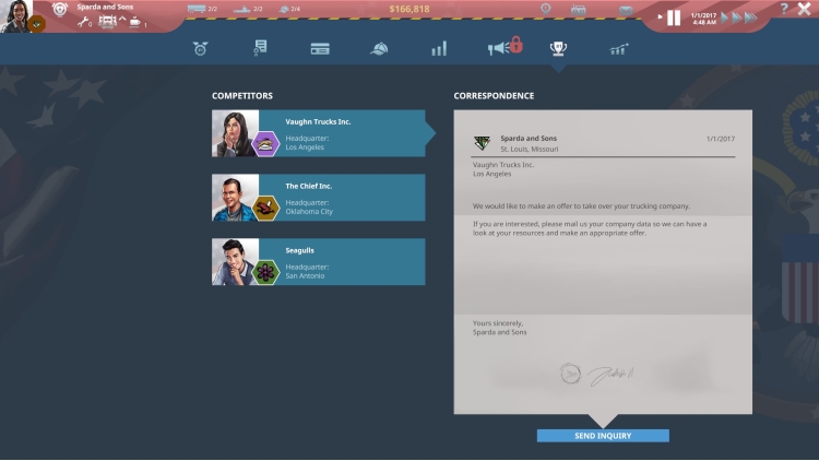 您以为自己终于掌握了业务?但您准备好迎接即将到来的汽车行业经济危机了吗?TransRoad: USA 将模拟市场和价格等经济关键绩效指标,并不断推出新的活动让您惊喜。接受挑战?