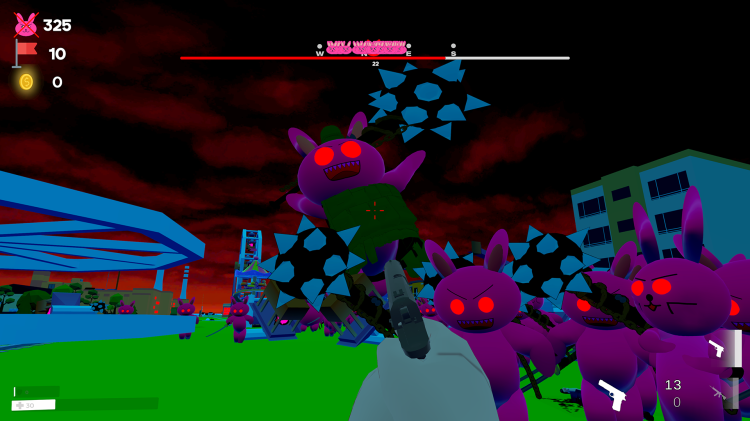 经典模式 – 10 个关卡 × 10 轮痛扁兔子,最后以几场本不该存在的 Boss 战收尾。